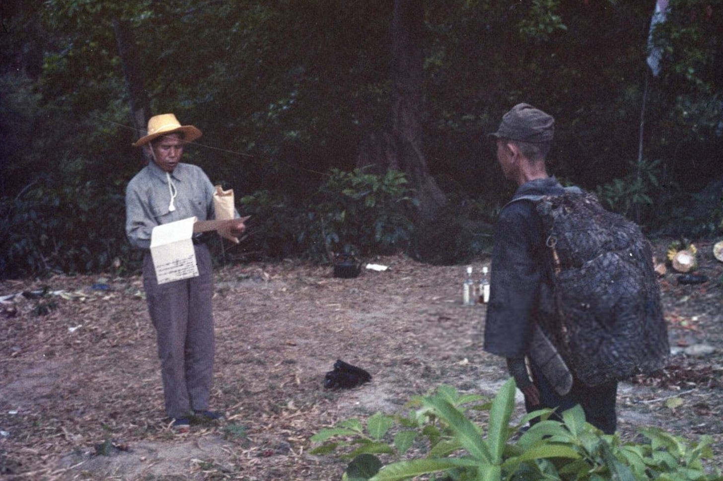 Судзуки сразу заявил: Онода-сан, я японец; император и японский народ обеспокоены вашей судьбой. То есть перевёл разговор в понятную Оноде плоскость. Но не для того Онода сидел столько времени в джунглях, чтобы терять бдительность. Он всё время осматривался, нет ли где-то поблизости американцев, и засыпал Судзуки вопросами, проверяя, действительно ли он родом из Японии. Одна деталь успокоила Оноду: Судзуки был в шерстяных носках и сандалиях, что невозможно для филиппинца. Судзуки спросил Оноду, почему тот не выходит из джунглей, и Онода объяснил, что приказ может отменить только его непосредственный начальник — майор Танигучи. Тут тоже проявилась его подозрительность: майор Танигучи не был начальником Оноды. Но Онода ещё не доверял Судзуки и не мог назвать имена своих настоящих начальников.
