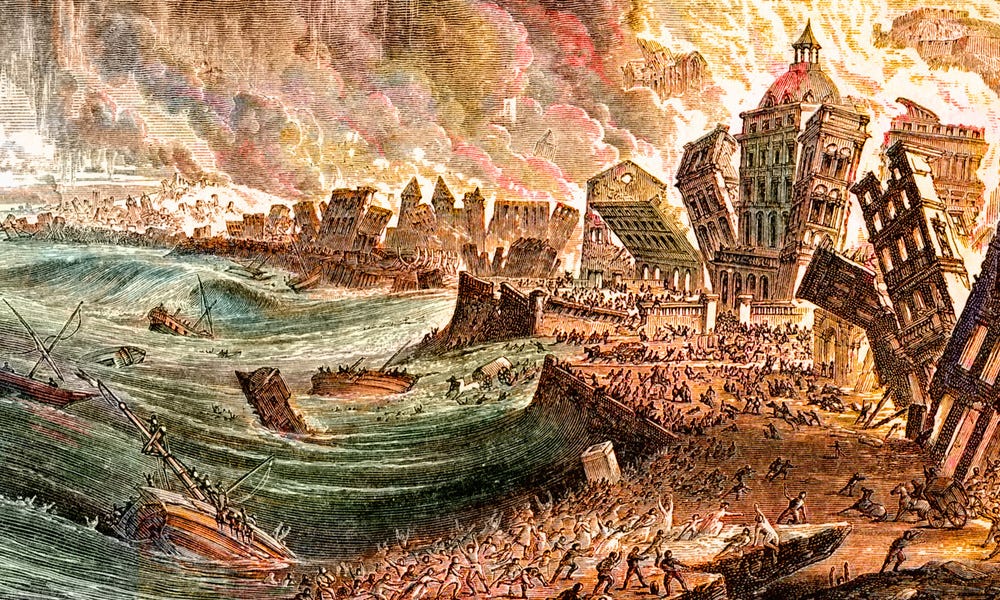 Надо сказать, что гибель целого города, произошедшая с невероятной скоростью и по совершенно непонятным причинам, произвела сильное впечатление на весь мир, и, в частности, на тех, кто уже и так в середине XVIII века размышлял о том, почему Бог допускает совершенно необоснованные и непонятные человеческому разуму дела.