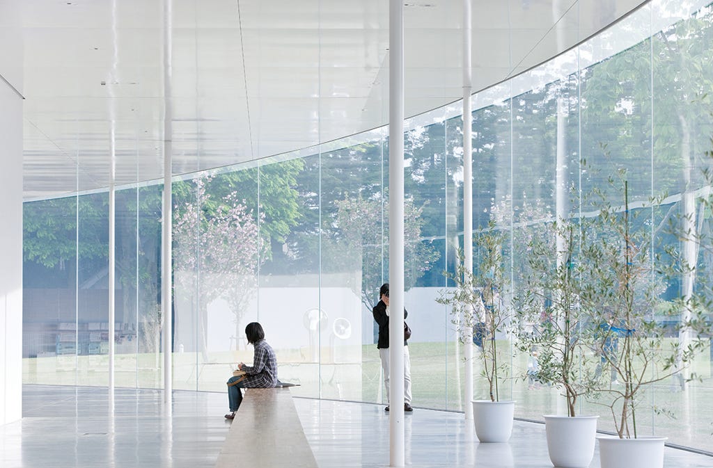 Ещё в прошлый приезд я видела, как в Канадзаве, в музее, окружённом знаменитым садом, были сделаны огромные окна — практически стеклянные стены, за которыми были видны деревья. И повсюду стояли кресла — повернутые не к экспозиции музея, а к окну, и люди сидели и просто смотрели на сад. А в отелях, где мы останавливались, любые окна — в коридорах, в номерах — сделаны так, чтобы смотреть на ручеёк, на клён, который тянется к окну, на огромный камень и тростник.