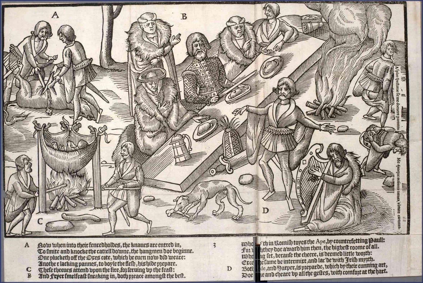 И тут между воинами разгорелся спор о том, кто будет делить свинью и раздавать куски. Это должен был делать самый великий воин — и все они бесчестили друг друга, доказывая, что с противоположной стороны никто не заслужил такого почёта. И вот, когда Конал, жаждавший делить мясо, оскорбил противника, тот пожалел, что здесь нет воина по имени Анлуан. Тот бы приструнил Конала.