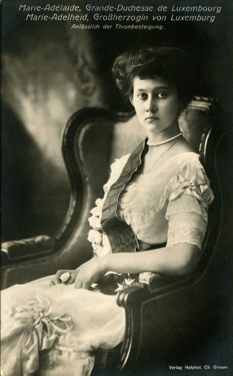 В самом начале Первой мировой войны немецкие войска оккупировали Люксембург. Но если о бельгийской оккупации и немецких зверствах в Бельгии в те времена говорили и писали очень много, то на Люксембург как-то особого внимания никто не обратил. Действительно, там не было никаких боёв и никаких разрушений или зверств. Как это ни смешно, Люксембургом с 1912 года управляла великая герцогиня Мария-Аделаида. Герцогство отделилось от Нидерландов, потому что там на престоле оказалась королева, но не прошло и четверти века, как здесь тоже началось женское правление — и ничего, не развалились.