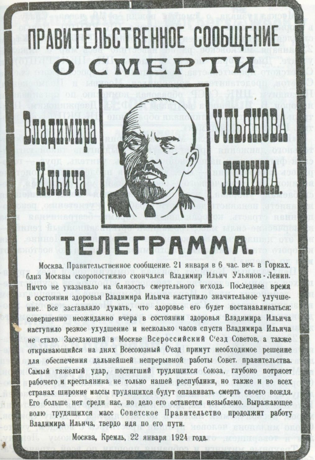 К концу 1923 года Ленин перенёс ещё несколько ударов и уже не мог ни двигаться, ни говорить — но в газетах появлялись сообщения о том, что он идёт на поправку, так что весть о смерти вождя 21 января 1924 года оказалась для многих совершенно неожиданной.