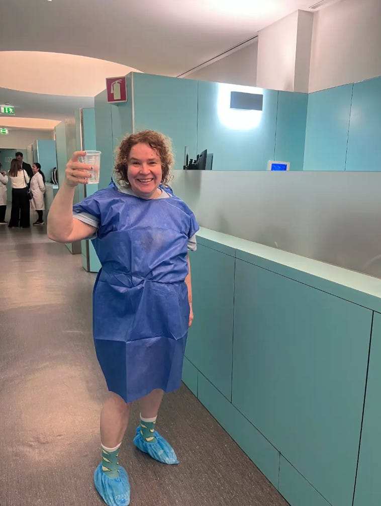 В течение ХХ века врачи постепенно двигались к тому, чтобы получить от радиации максимальную пользу, минимизировав вред. Сегодня я прихожу облучаться в отделение радиотерапии и вижу весёлых и бодрых людей. Мы все выглядим очень смешно. Почему-то полагается снимать брюки и обувь, оставаться в носках, на которые надеваются бахилы. Сверху мы надеваем синие балахончики.