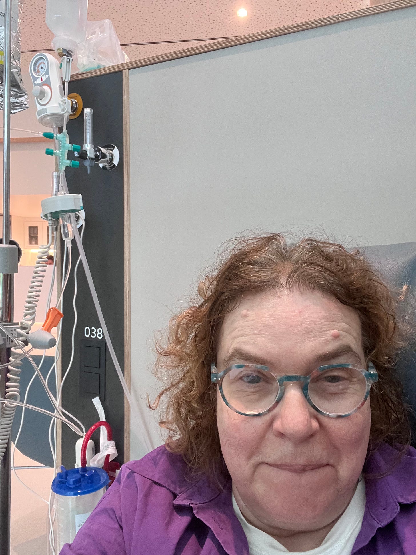 Всё это время мне капали и капали физраствор, лекарство, опять физраствор. А я пришла после облучения — уже наполненная водой до ушей, двигаясь перебежками от одного туалета до другого. К счастью, они тут на каждом шагу.